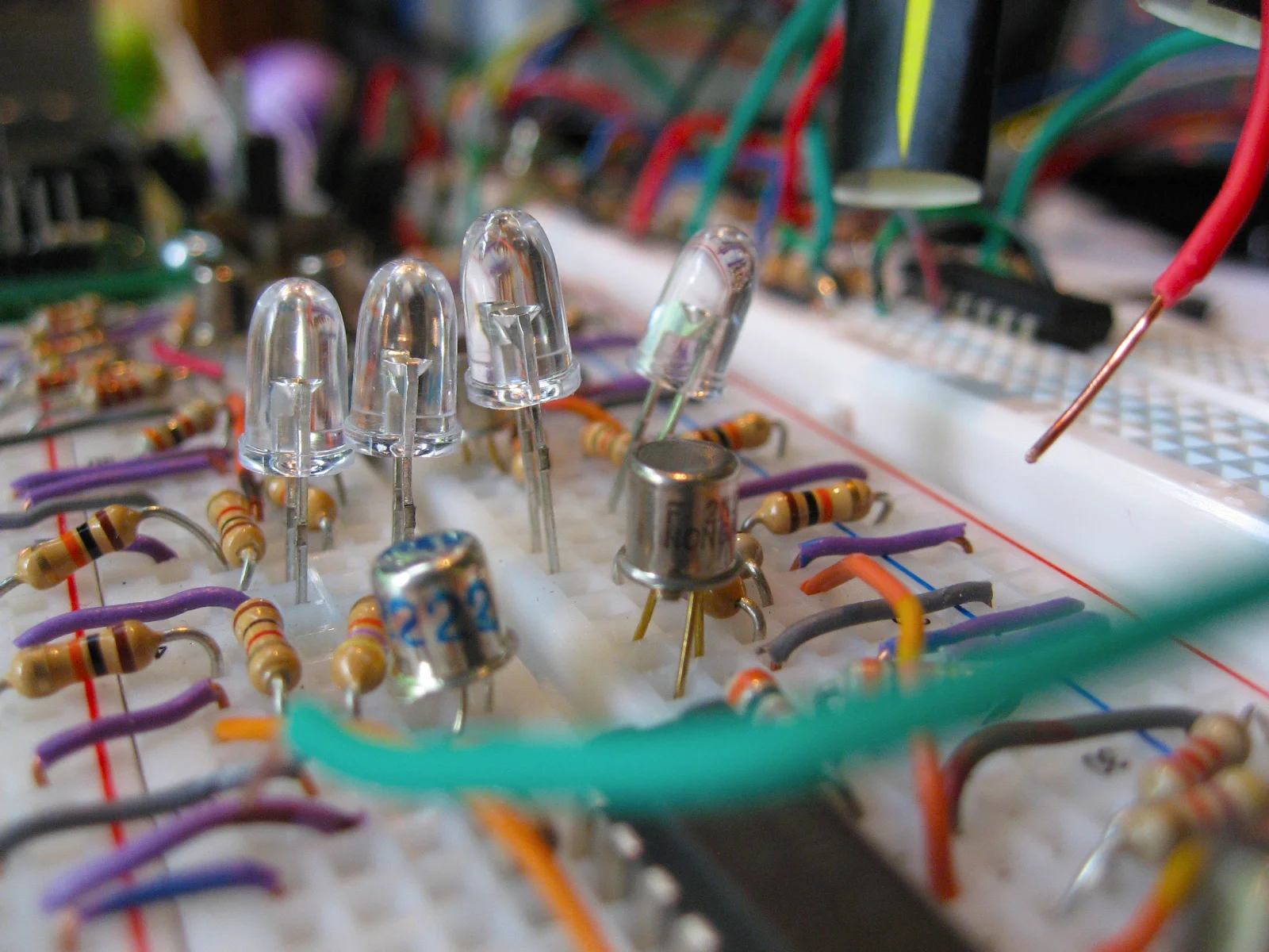 AtMega8501 microcontroller, 12V batteries, a wooden base with wheels,
